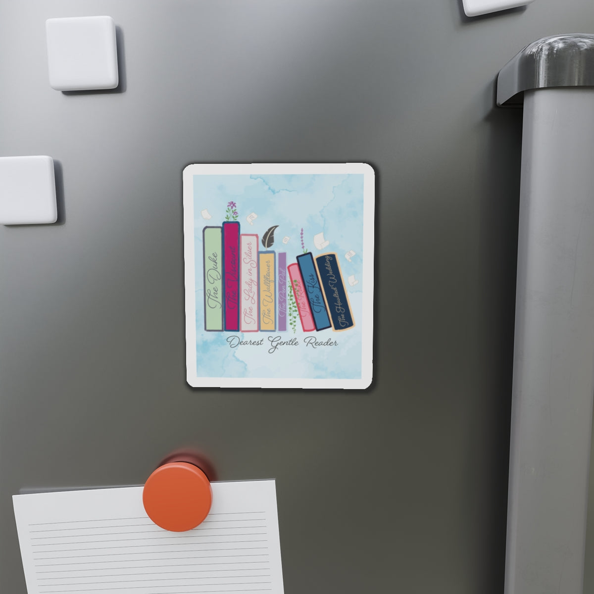 Bright, custom die-cut magnets that bring a touch of bookish charm to metal surfaces. These lightweight vinyl magnets feature full-color printing with a matte finish and a thin black backing for clean edges. They cling firmly to fridges, lockers, whiteboards, and other smooth surfaces while resisting wear from everyday use. The design’s playful stack of books and soft watercolor background adds a warm, literary vibe—small moments of inspiration for kitchen doors, study spaces, or reading nooks.