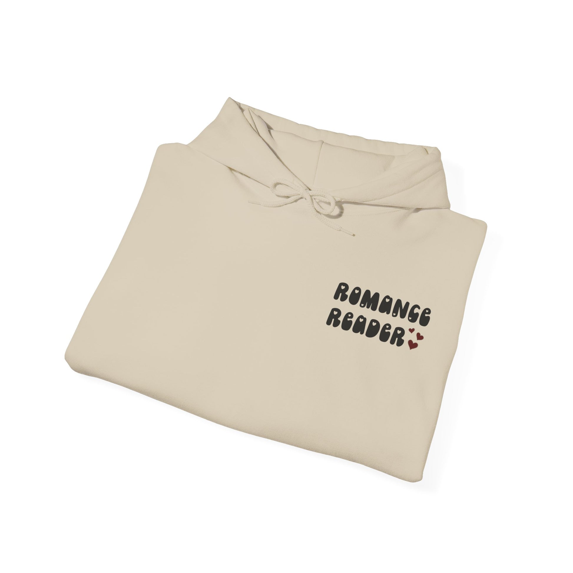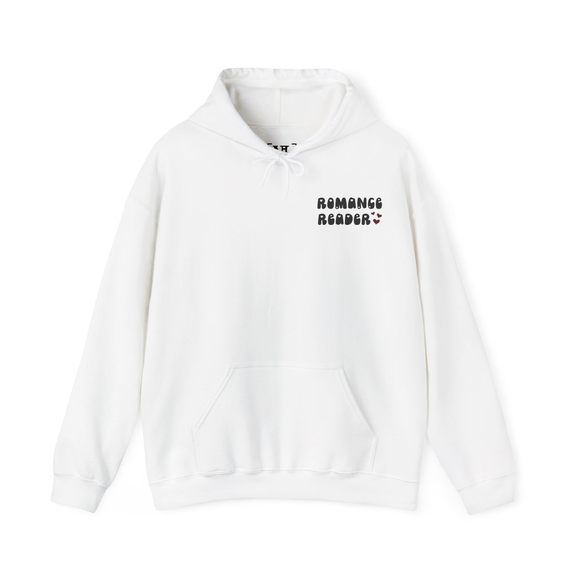 Romance Reader Hoodie — Cute Pink Heart Book Lover Pullover (Black Text)