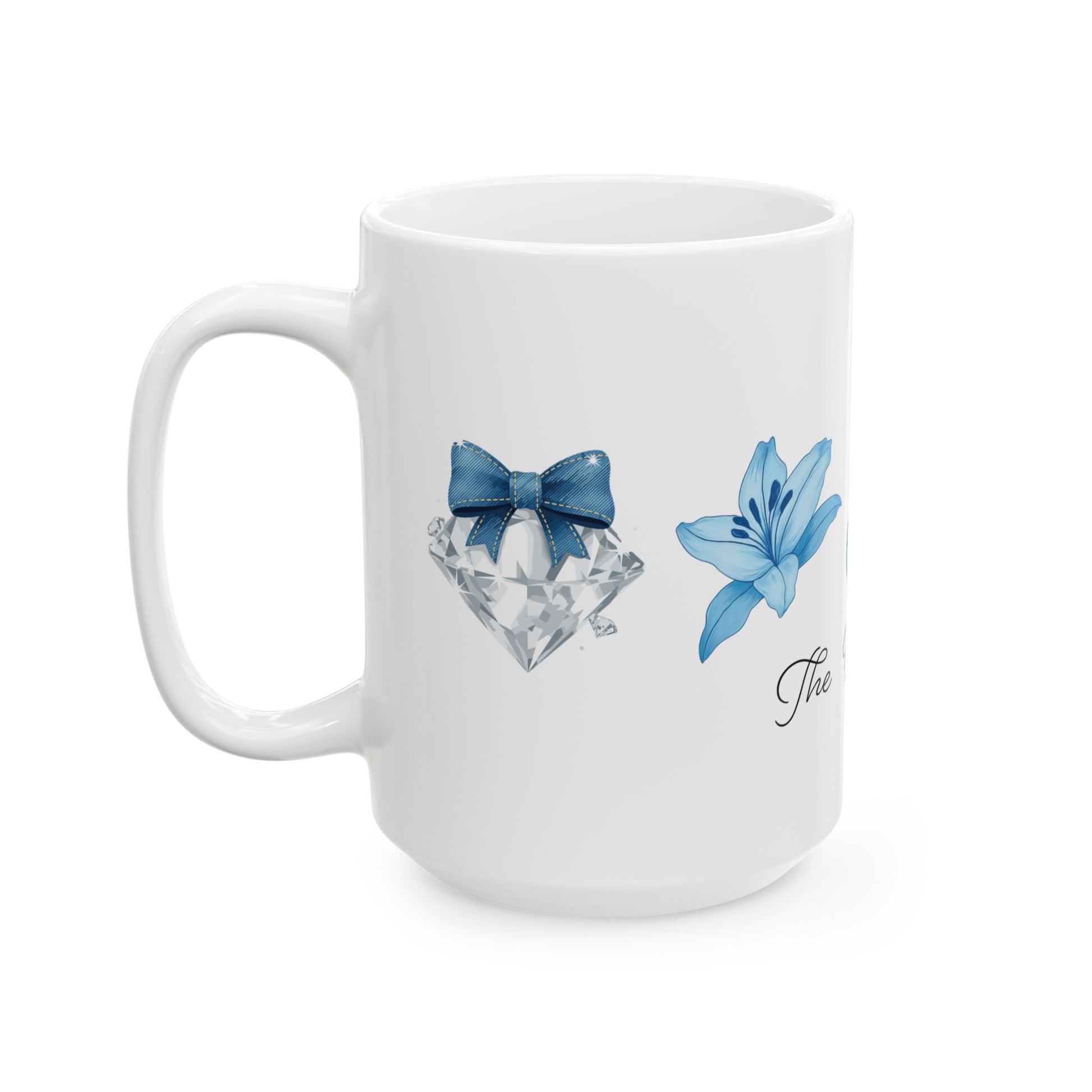 Start your day with a delicate moment — a white ceramic mug wrapped in soft blue illustrations that feel like a page from a beloved storybook. Watercolor lilies, a whimsical carriage, and a graceful mask form a gentle vignette around the cup, while elegant script adds a touch of handwritten charm. The glossy finish makes the colors sing and gives the mug a luminous presence on your kitchen shelf. It sits comfortably in your hand with a rounded C-handle and comes in two sizes to match your ritual: a smaller, cozy 11 oz for quiet mornings, or a generous 15 oz for slow, long-sip afternoons. Durable, lead- and BPA-free, and safe for microwave and dishwasher use, this mug blends everyday practicality with a soft, nostalgic aesthetic that invites you to linger over a cup of tea or share a thoughtful moment with someone special.
